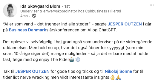 Jeg tilbyder undervisning, rådgivning og workshops med fokus på ChatGPT og Microsoft 365 Copilot